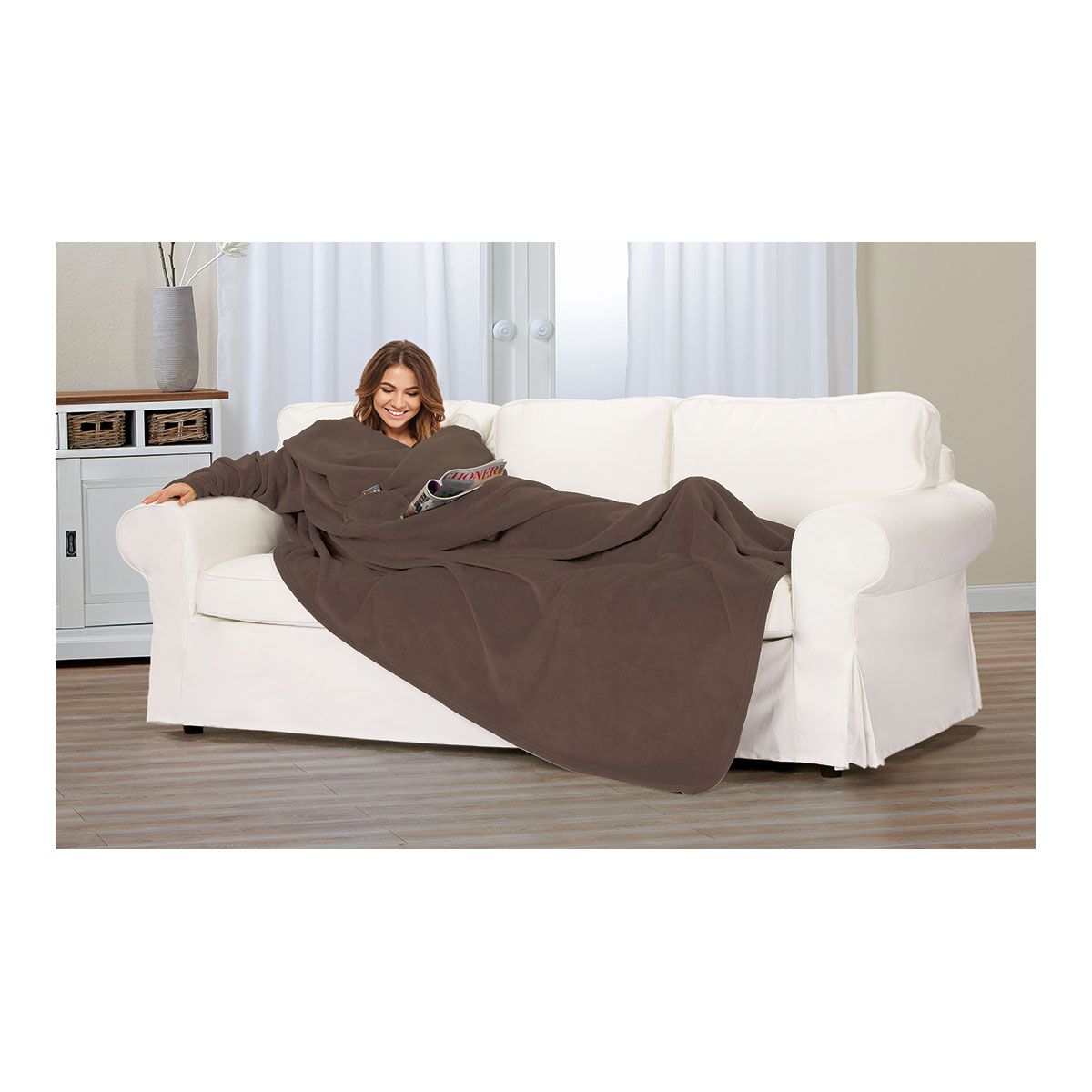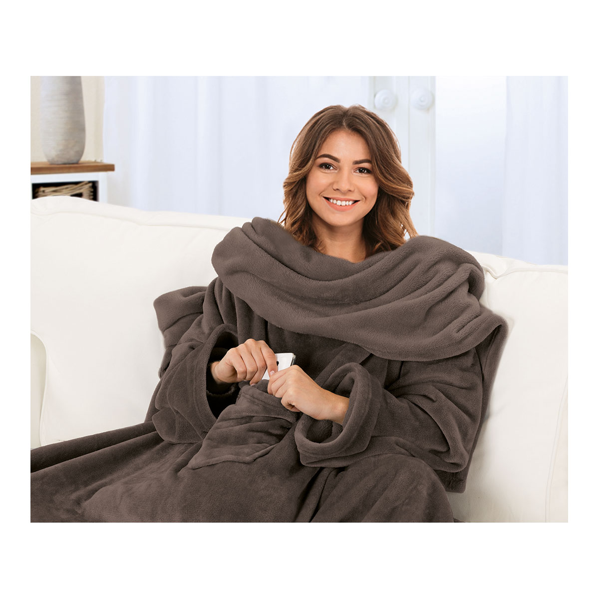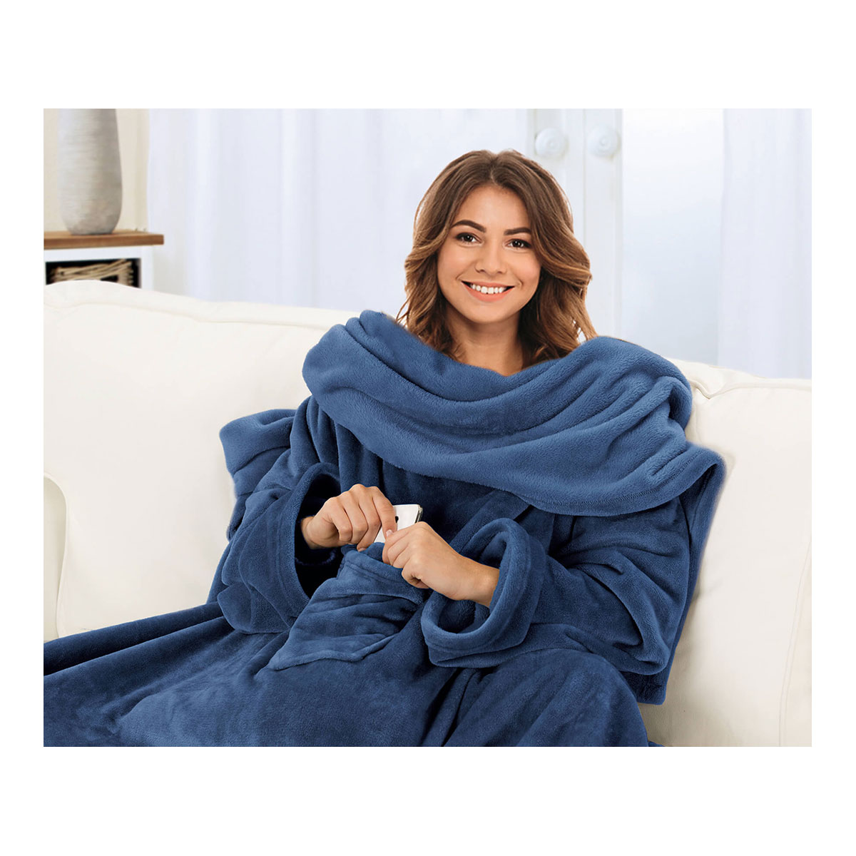Gemütliches Wohnambiente: Flauschige Kuscheldecke mit Ärmel (150 x 240 cm), Ideal zum Einkuscheln auf dem Sofa für gemütliche Fernsehabende. Einfaches Einhüllen durch großzügige Ärmel, Ausreichend Platz für Handy, Fernbedienung etc. dank Brusttasche mit integrierter Tasche. Kuschelig leichte und wärmende Mikrofaser, erstklassige Wärmespeicherung, hautsympathisch und federleicht durch hochwertige Polyester-Mikrofaser.
