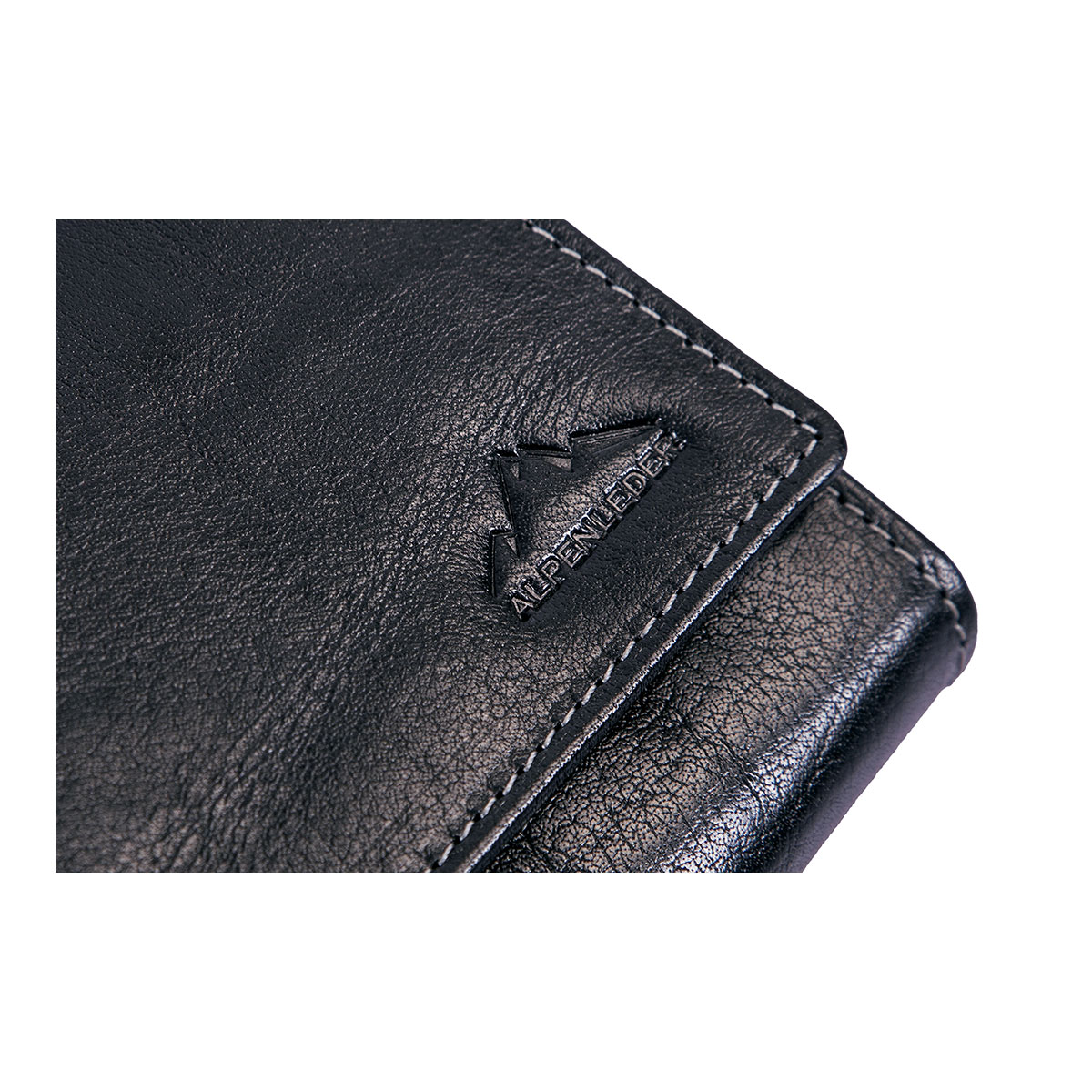 Im Inneren bietet ALMRAUSCH mit drei großen Fächern Platz für Dokumente, dazu sind acht Kartenfächer und ein Münzfach mit dreiseitigem Reißverschluss und ein zusätzliches Fach mit Reißverschluss angebracht. Der Ausweis findet im Steckfach mit Sichtnetz Platz.
