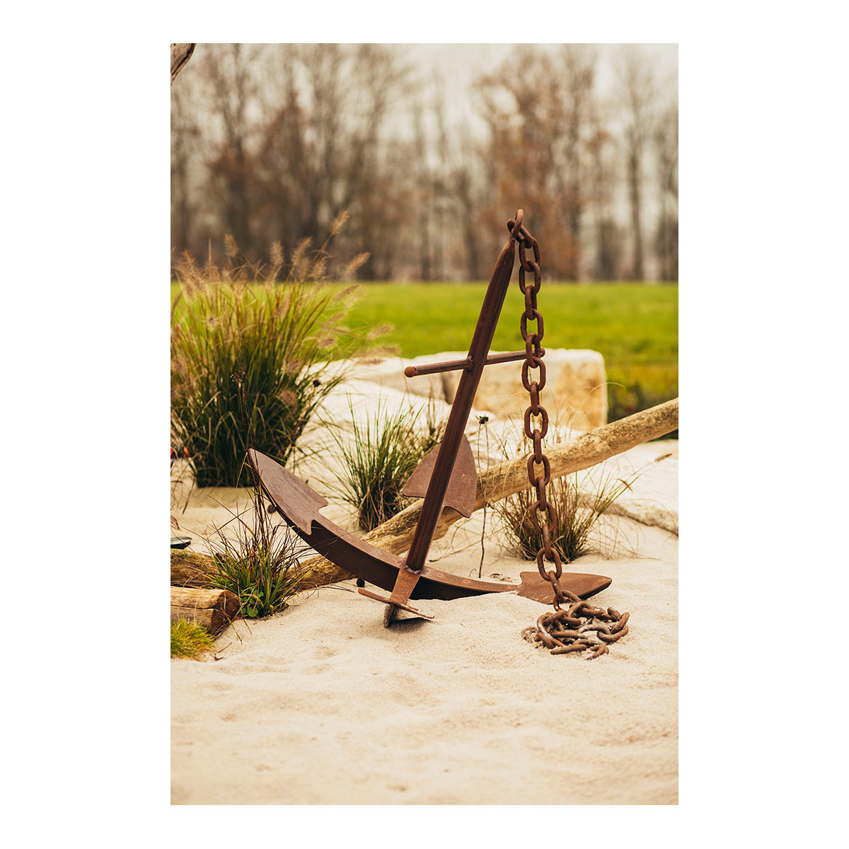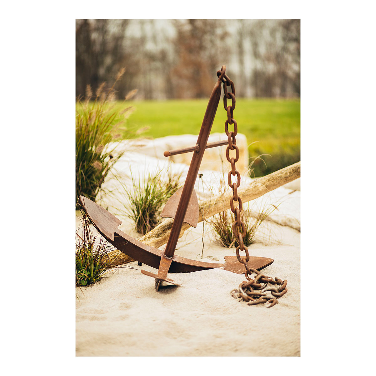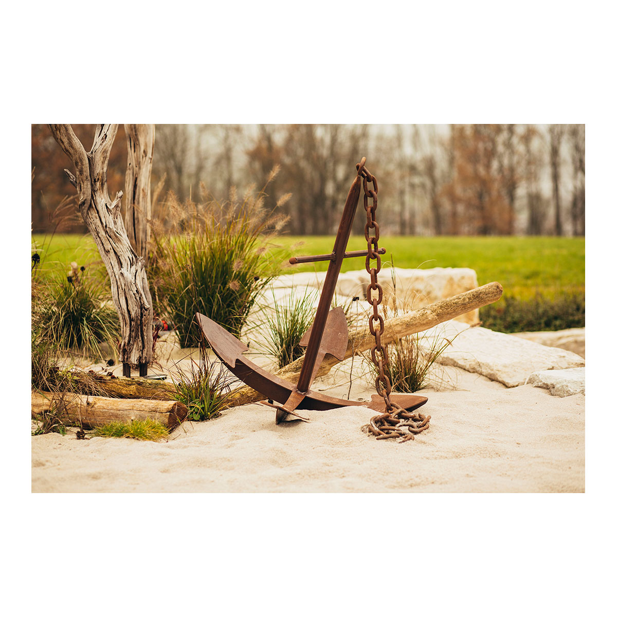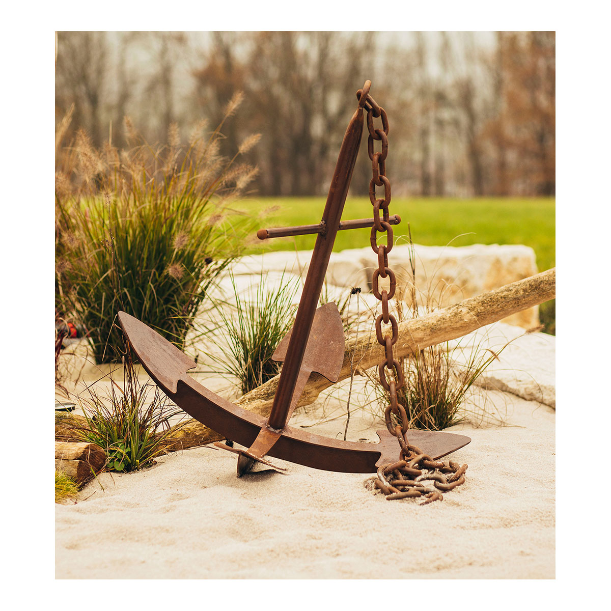 Die gerostete Ferrum Art Design Deko-Skulptur Anker ist aus Metall gefertigt und anschließend gerostet. Der wuchtige Anker wird so zum dekorativen Blickfang in jedem Garten, besonders in der Nähe zu einem Teich oder einem Wasserspiel.
