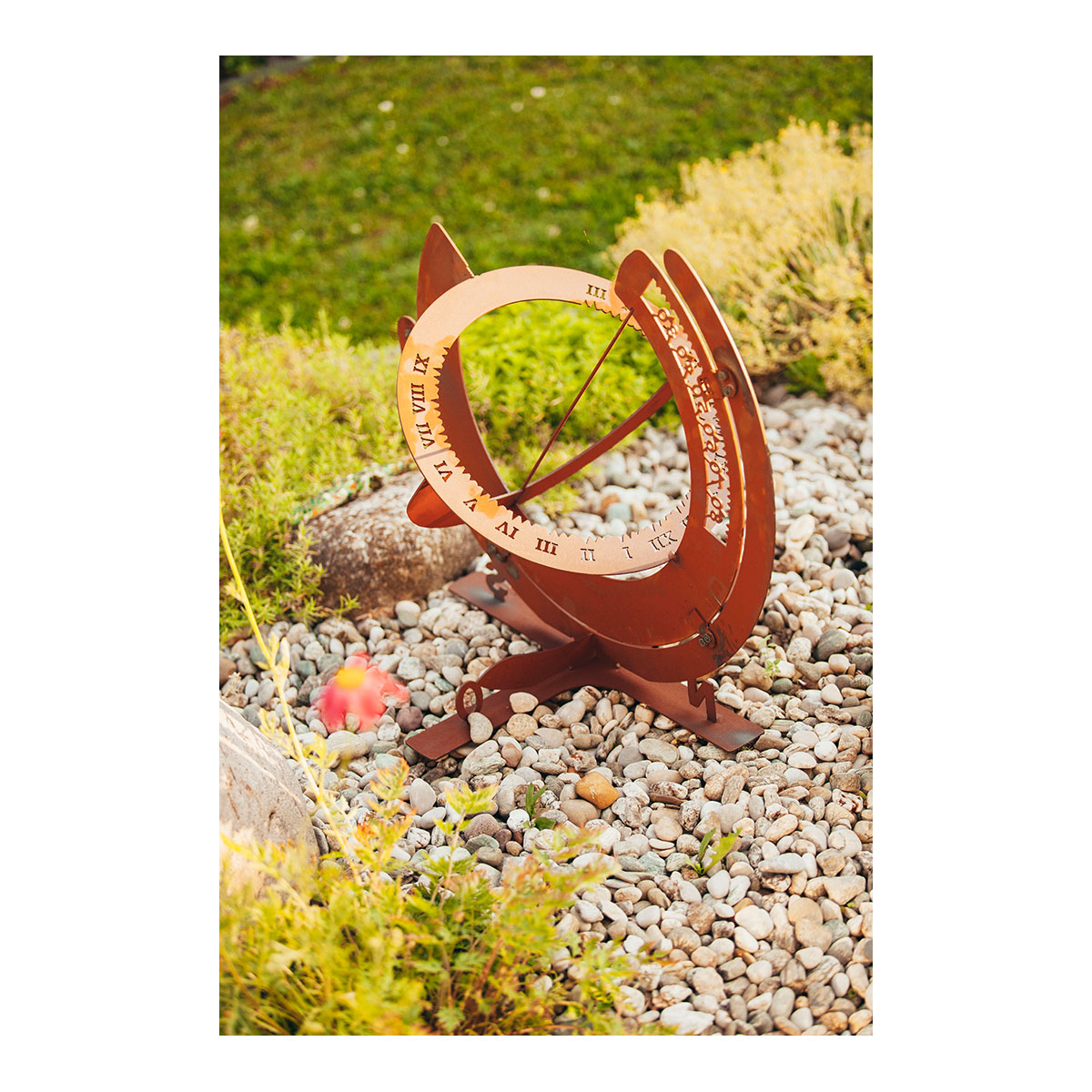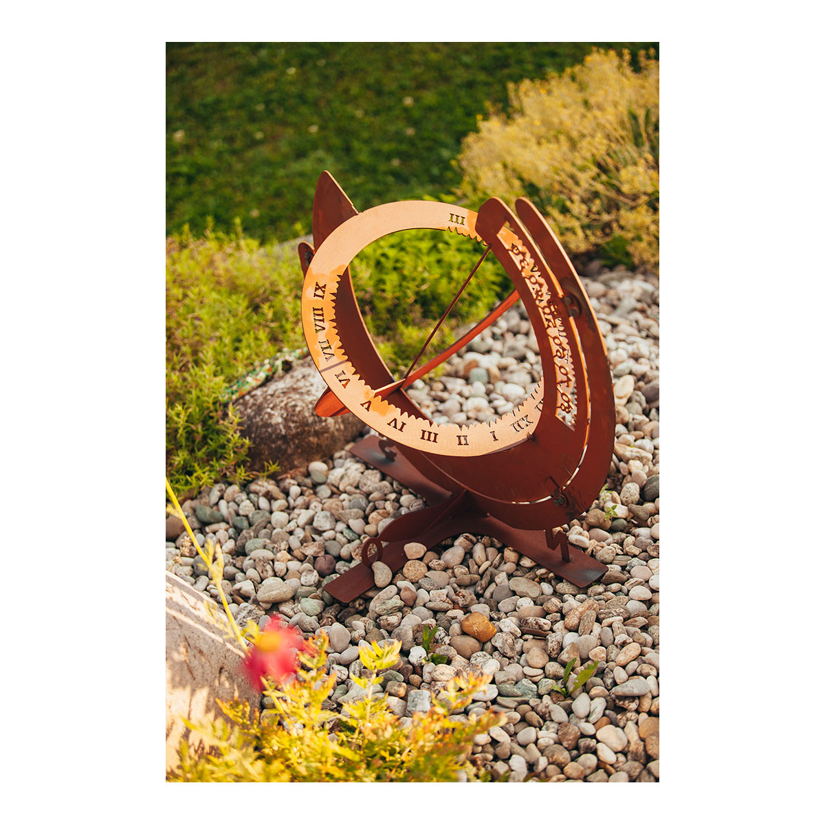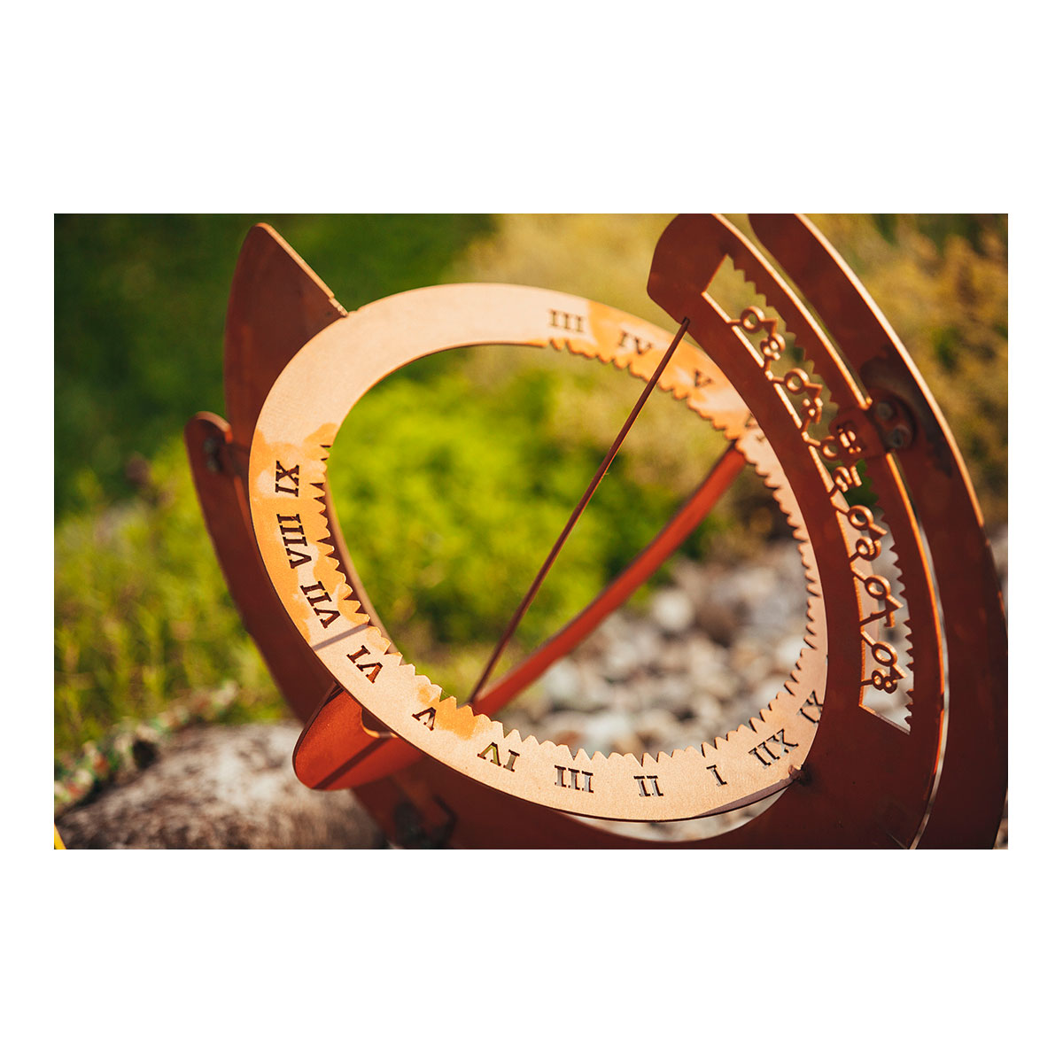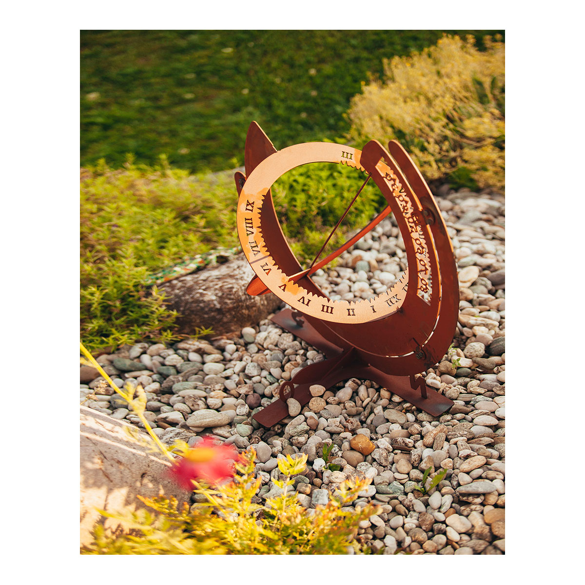 Die filigran gearbeitete Sonnenuhr sollte auf einen ebenen Untergrund aufgestellt werden. Dann zeigt sie die wahre Ortszeit an. Diese weicht je nach Breitengrad von der Mitteleuropäischen Zeit ab.