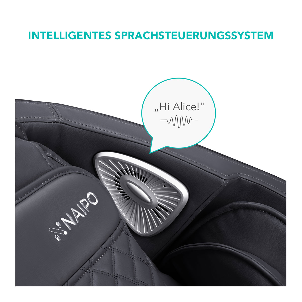 - 1-Klick-Schwerelosigkeits-Funktion: 2 Schwerelosigkeitspositionen. Die Massageschiene folgt der Krümmung Ihrer Wirbelsäule während die Massagerollen jede Muskelgruppe erreichen