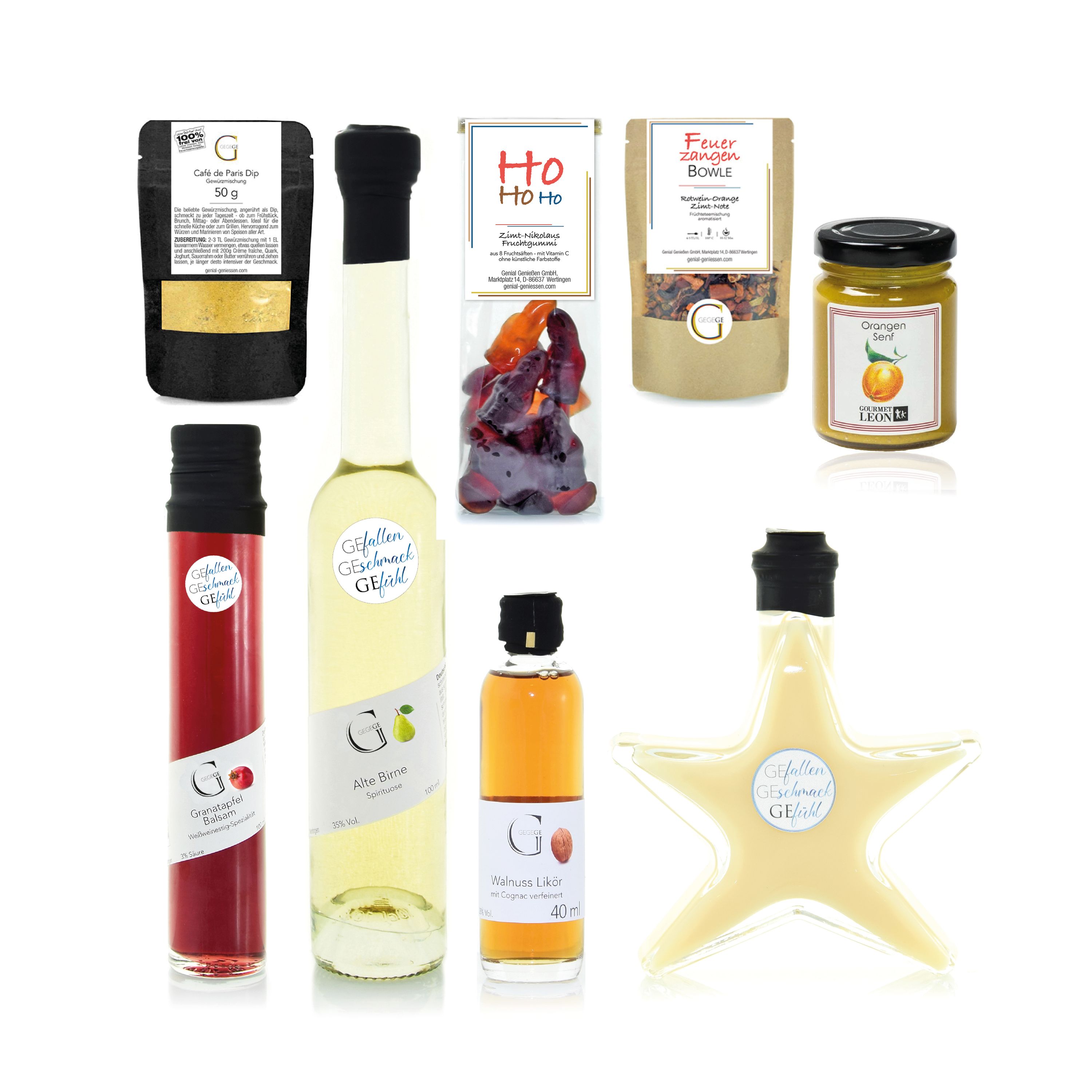 Brotzeit-Liebhaber sind von Orangen Senf begeistert. Zimt-Nikoläuse nascht einfach jeder gerne. Und mit Vanillekipferl-Sahnelikör, Alte Birne Schnaps und wohlschmeckendem Feuerzangen-Bowle-Tee lässt sich genussvoll Feiern und behaglich Innehalten