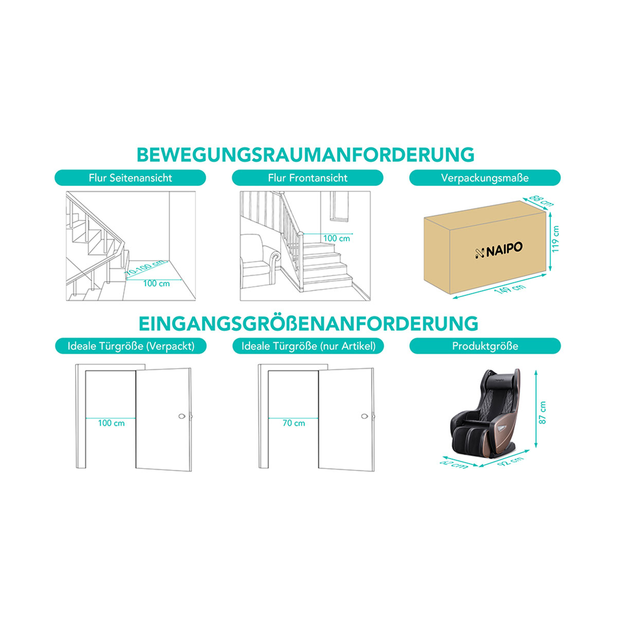 Ein kompakter Mini-Massagestuhl für Ihr Zuhause! Die L-förmige Massageschiene bietet eine umfangreiche Rückenmassage, die bis hinunter zu der Hüfte reicht.