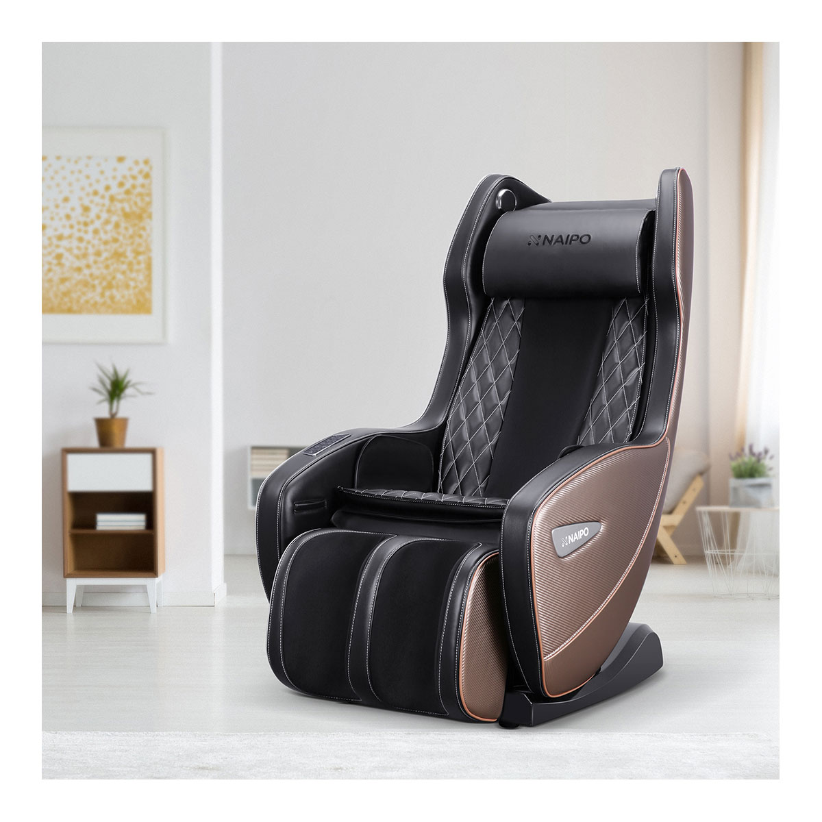 Das kompakte Design dieses Massagesessels für das Wohnzimmer erfordert nur minimale Montage. Das schlankes Design passt nahezu in jedes Zimmer.